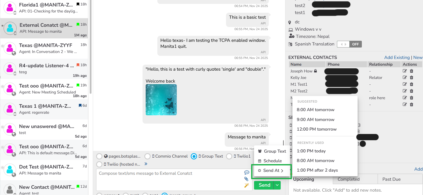 Agents now have greater control and transparency over their group communications. You can now view, add, or remove participants from group texts. Furthermore, all activity within group texts is now logged, providing a clear record of communication and participant changes for better oversight.