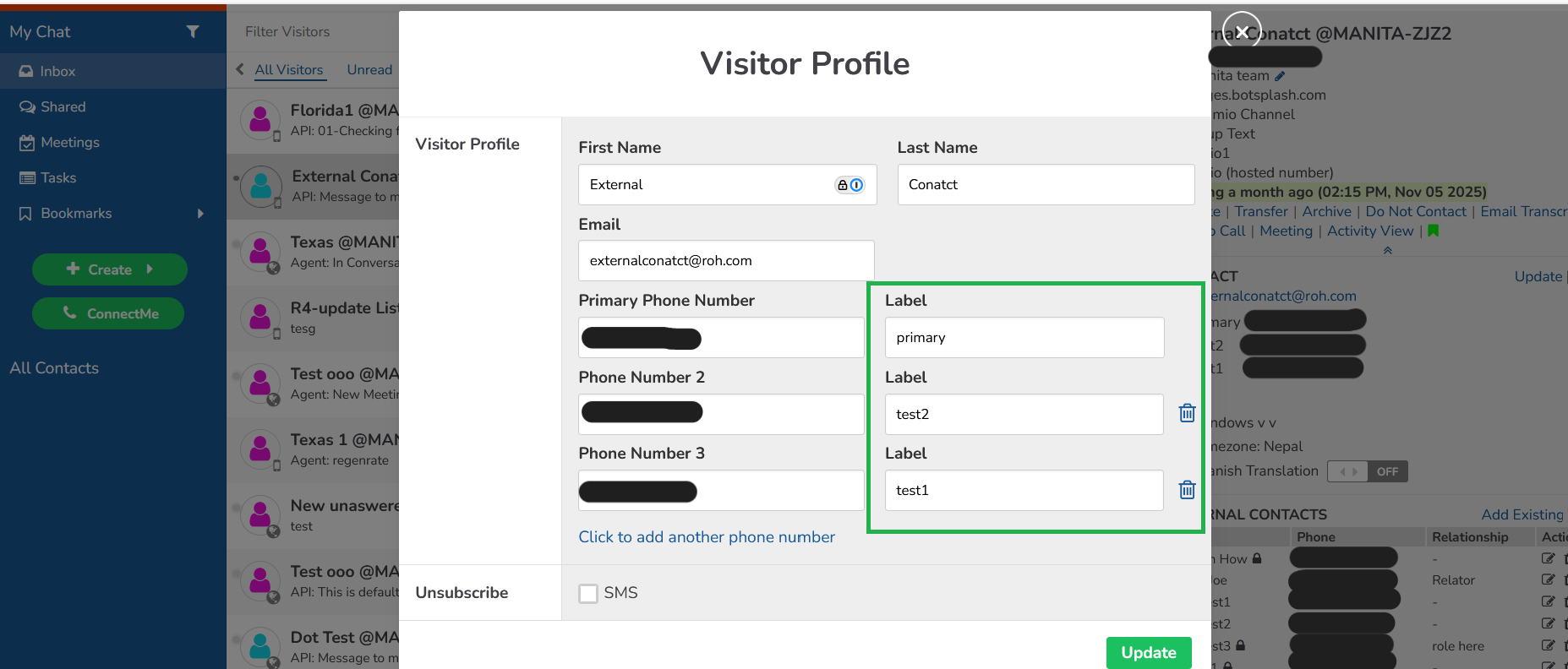 We've introduced a small but useful feature: an optional label field when adding a new phone number to a visitor's contact card. This allows agents to easily identify the purpose of a number (e.g., "Work Mobile," "Partner Line"), improving clarity and agent efficiency during communication.